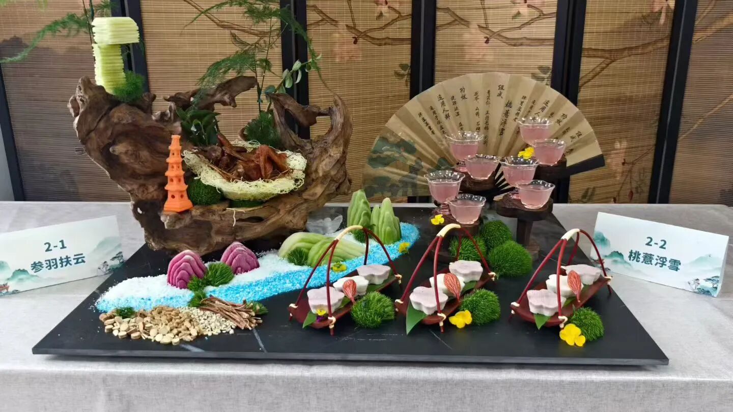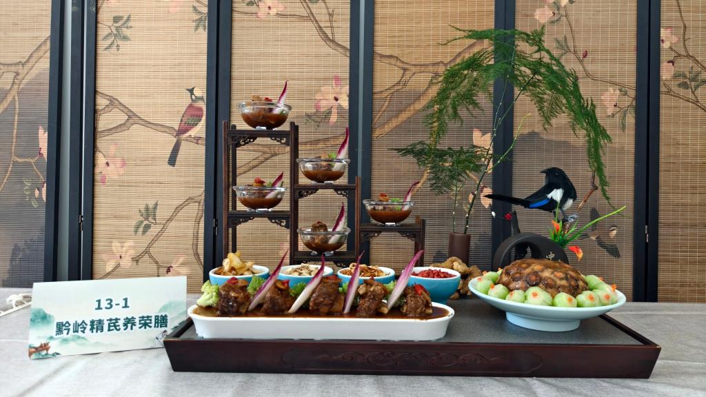 13支参赛队伍展开紧张而有序的角逐。最终,贵州中医药大学与杏林汤品联合团队荣获一等奖,第一附属医院、第二附属医院获得二等奖,贵州食品工程职业学院、广东省中医院贵州医院和贵州医科大学附属医院获得三等奖;上述获奖队伍均晋级第三届“贵药膳”大赛决赛。“云上五方卷”“参羽扶云”“黔岭精芪养荣膳”获评“最佳药膳”;“贵糯五行饮”“桃薏浮雪”“梵香黔咖”获评“最佳饮品”。