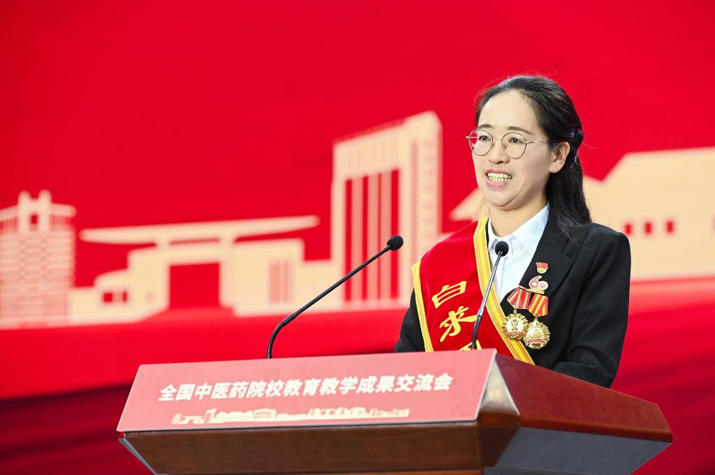 校长周英作学校60年教育发展报告。全面回顾贵中医60年来筚路蓝缕、砥砺奋进、不断推动贵州中医药高等教育事业发展进步的奋斗历程与干事创业故事。她说,贵州中医药大学将始终扎根贵州大地,服务人民健康,在教育强国、健康中国建设的伟大征程中,以“功成不必在我”的境界和“功成必定有我”的担当,续写中医药教育时代华章,为谱写中国式现代化中医药实践新篇章贡献更多“贵中医智慧”和“贵中医力量”。