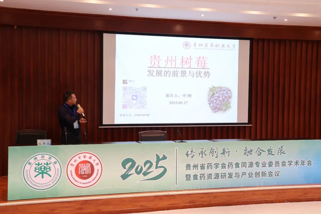 在食药资源研发与产业创新会议环节,贵州大学教授谢国芳,贵州师范大学教授陈华国,贵州理工学院教授刘晓柱,贵阳康养职业大学高级农艺师申刚,贵州省农科院油菜研究所正高级农艺师余顺波等专家作专题报告。报告聚焦刺梨、树莓、紫苏等贵州特色食药资源的成分研究与精深加工技术突破,致力于破解制约产业升级的关键技术瓶颈,为打造具有贵州特色的药食同源产业集群、服务区域大健康产业高质量发展注入新动能。