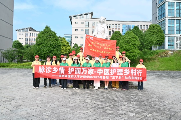 今年放暑假之前,我参与了学校的“三下乡”活动,横幅上写着的"贵中医护理"成了最醒目的标识。有位老奶奶了解了我们“三下乡”活动的内容后来体验中医理疗,我蹲下来为她进行腿部的艾灸,她忽然和我说:"你们学校的娃娃,和当年给我瞧过病的老中医一样心细。"那一刻,我仿佛看见六十年间无数白衣身影的叠影——他们从这里走出,带着药香走向山川湖海,把"厚德"的种子撒向更广阔的天地。